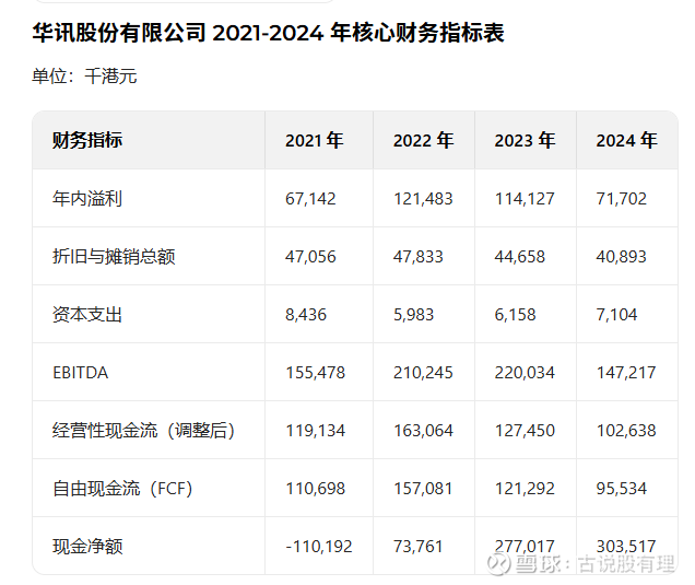 表格中数值为 “千港元”,对应金额需换算为 “百万港元”(更直观):
