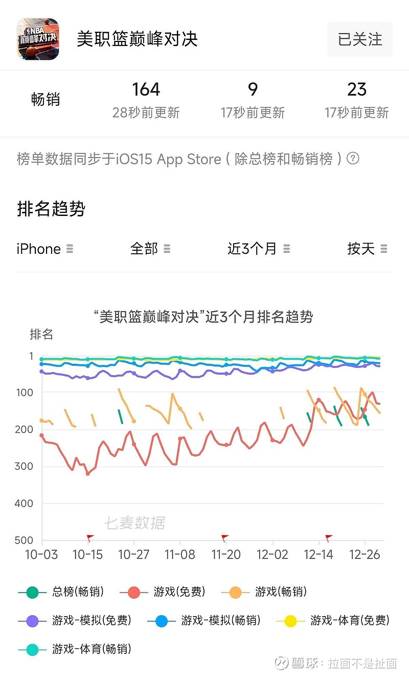 近3月,望尘科技台柱子游戏《美职篮巅峰对决》数据稳步上升。