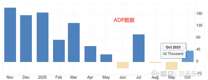 根据ADP的月度数据,10月份,新增就业人数为4.2万人,相比9月份的-2.9万人大幅好转。但是,4月份之前,ADP就业人数一直在8万人上方,近两年最高达到过22万人 。虽然10月份数据好转,但仍远低于正常状态下的就业数据。