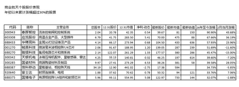 2025年第四季度启动的商业航天概念第一波行情造就了一大批牛股。