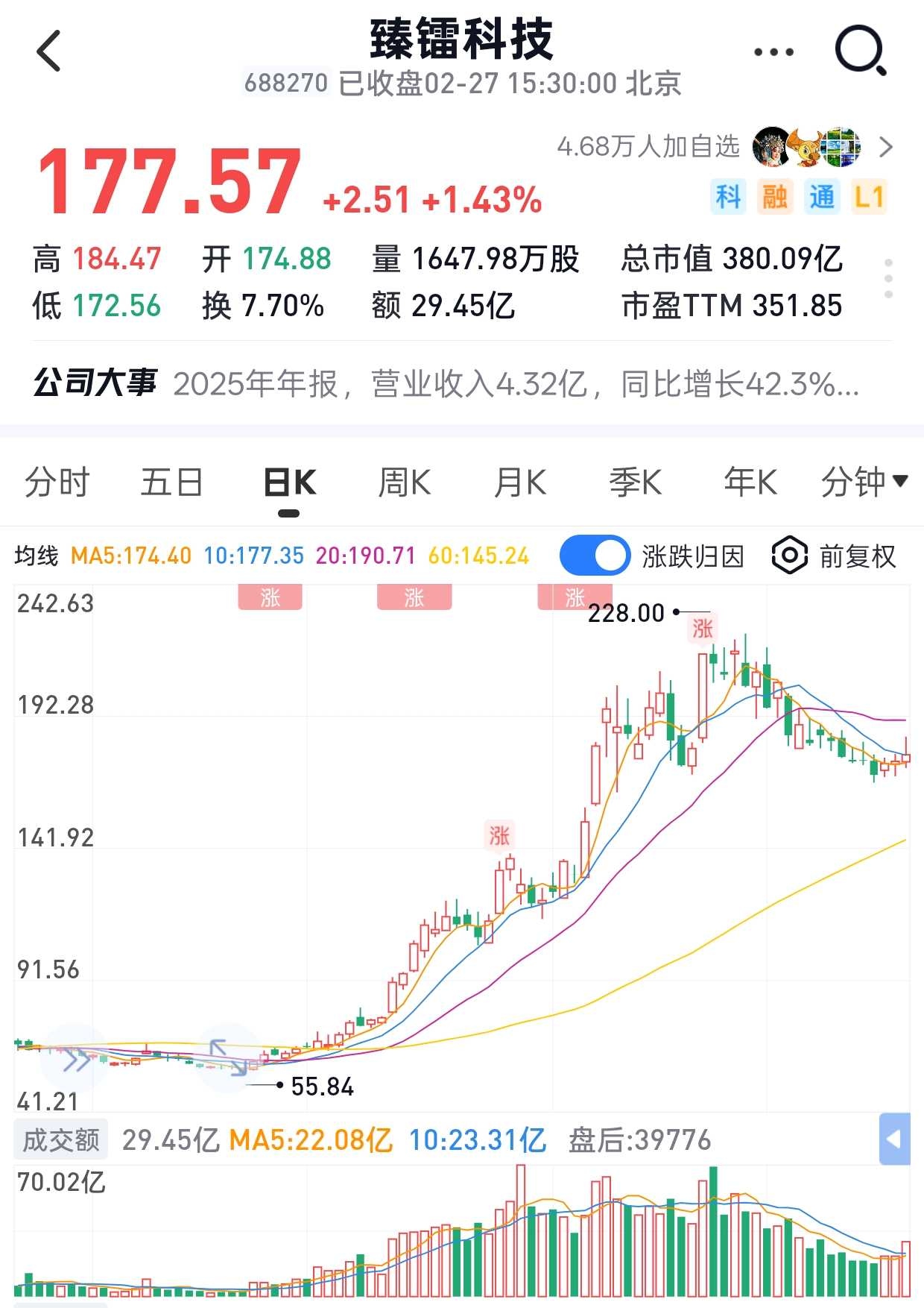 铖昌科技的同门兄弟,2025年净利暴增近六倍,对应股价暴涨约300%。年初以来累计涨幅49%。但节后股价反弹的整体表现偏弱,仍受制于信披违规被证监会立案调查这一潜在利空因素。市值超过铖昌科技约100亿元。