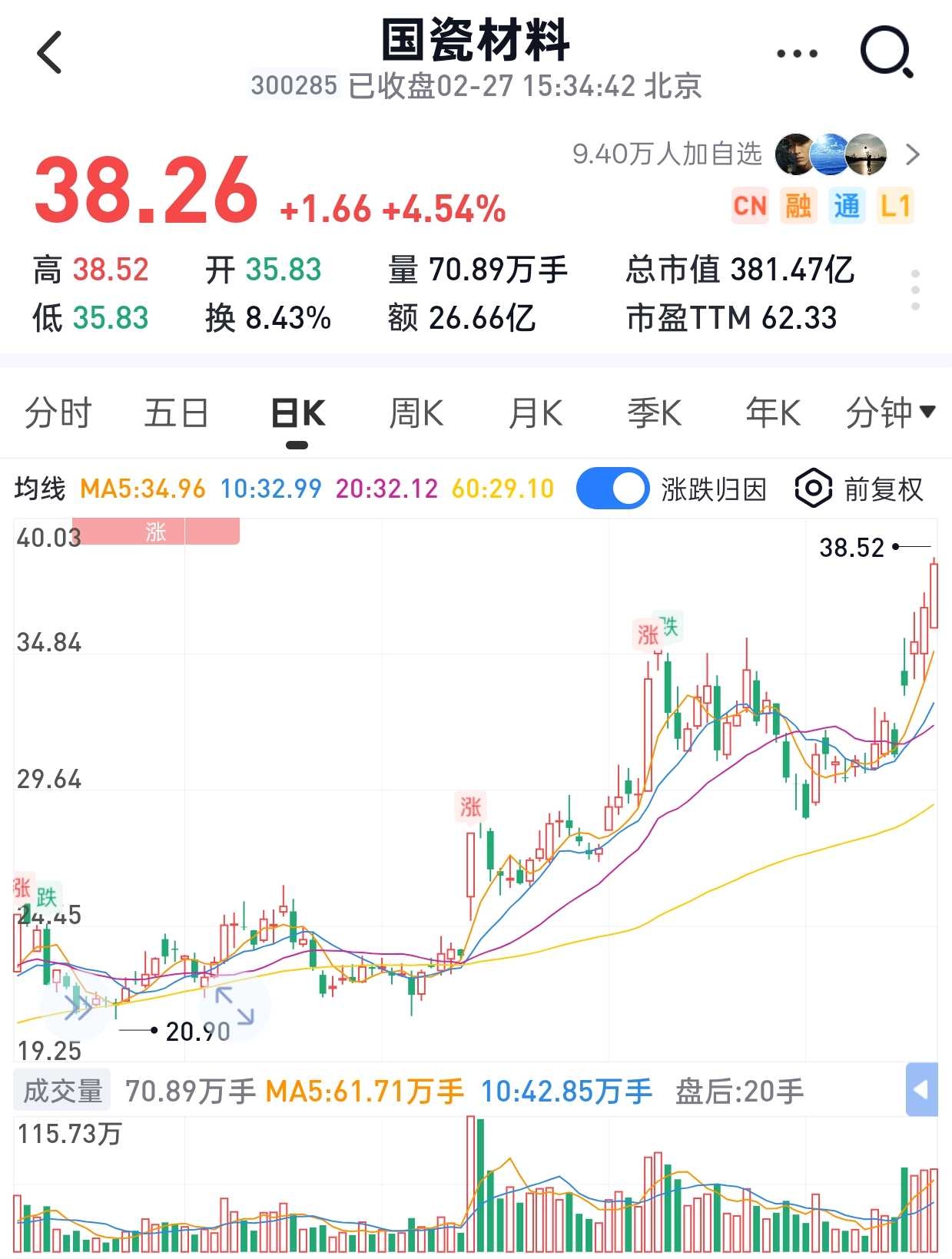 主营高端功能性陶瓷新材料,产品下游行业多元,包括航天领域的卫星射频封装管壳。节后一周股价涨幅达到23.4%,拟投资8亿元收购澳洲上市公司SDI全部股权,扩充牙科用材料,非商业航天因素利好。