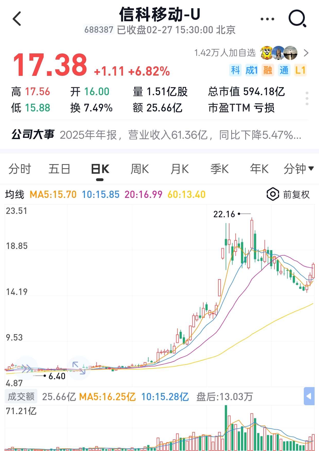 主营星载相控阵T/R芯片,铖昌科技是最正宗的商业航天概念股票之一(甚至没有之一)。行业进入壁垒极高,公司竞争力极强,且最适配商业航天的需求爆发。因为主板的上市规则所限(营收不足3亿元),公司被误伤,其股票2025年被“*ST”,去年12月初商业航天板块行情启动后,公司股票交易基本上不是涨停就是跌停,非常吸睛。尽管单日5%的涨跌幅,公司股票在2026年以来仍累涨51%。春节前连续跌停,节后四个交易日恢复性上涨了9.5%,成交量温和放大,表现可圈可点。