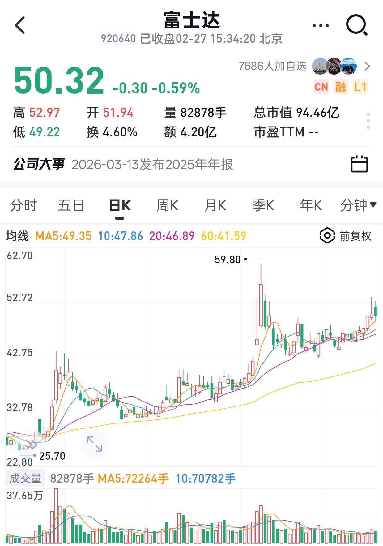 年初以来累计涨幅32%,属央企子公司,前期涨幅过大过猛,且体量较大,市值已高,有估值压力。短期业绩兑现有较大难度。公募基金重仓品种,股价进一步上行阻力较大。