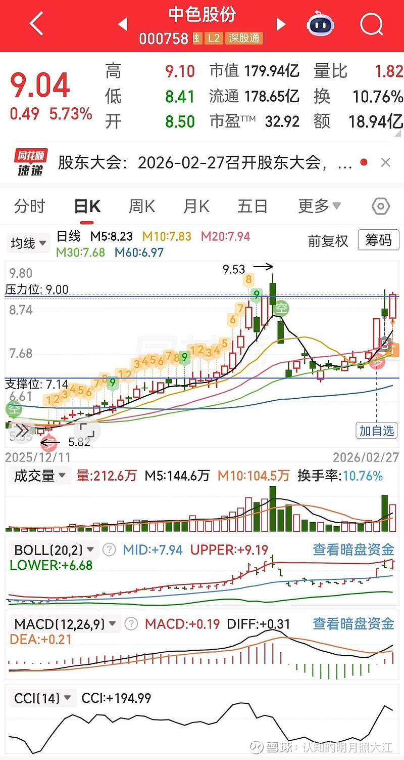五日线承接:股价连续站稳五日线(如2月27日收盘9.04元 > MA5=8.23元),显示短期支撑稳固。