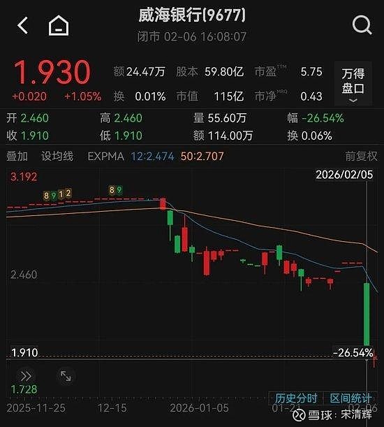 #威海银行暴跌#