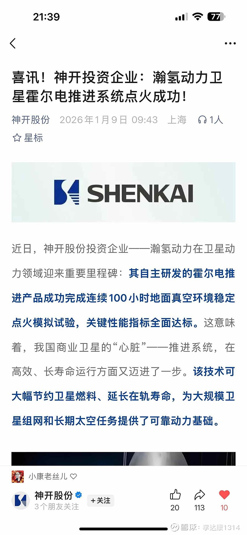 参股商业航天发动机公司很逆天