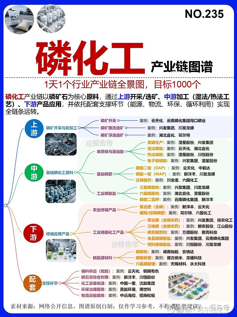 磷化工早已不是只做化肥的传统行业,它以磷矿为核心原料,覆盖磷肥、磷酸、磷酸盐等产品,如今靠着磷酸铁锂切入新能源赛道,同时向电子级磷酸、食品级磷化物等高端领域延伸,从 “农业化肥原料” 变成新能源 + 农业 + 高端化工的复合型赛道。