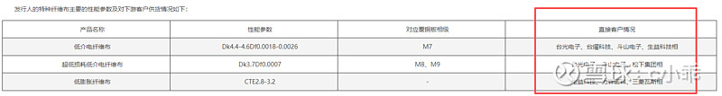 其一:就是电子布的主要客户,这次问询函终于官方口径披露如下:目前,公司特种纤维布产品的直接客户为包括台光电子、生益科技、台燿科技、斗山电子、松下集团、力森诺科、南亚新材、联茂电子、腾辉电子在内的国际国内知名覆铜板或芯片封装基板厂商。上述客户生产的高频高速覆铜板相产品主要应用到英伟达、AMD、亚马逊、谷歌、华为相国际知名科技企业产品中。
