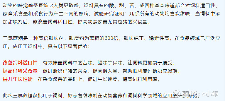$金禾实业(SZ002597)$ 我一直挺喜欢玩困境反转的,其实说困境反转针对金禾来说也不是很准确,但对代糖行业来说,其实还是可以的。近日看到金禾的三氯蔗糖居然进入了全国首款饲料添加剂。这标志着金禾正式成为5年(2026-2031)法规保护期内国内唯一具备合法生产及销售资质的企业。