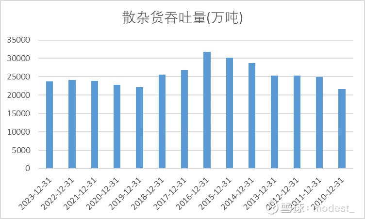 实际上散杂货装卸2017年就下降了,只不过因为2017年有2.97亿的汇兑收益,所以归母净利润2018年才开始下降。不过好的是2019年散杂货装卸量下滑到最低之后,最近几年开始逐步恢复增长了。