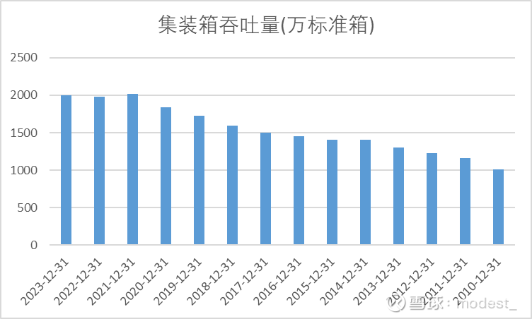 但是集装箱的收费逐步降低,从274.9元/吨,下降到了179元/吨,根据公司年报解释,集装箱价格降低,主要是合并了新的子公司,子公司的货品种类不一样,导致的下降。个人猜测,除了公司解释的货物种类的原因,集装箱收费也会因为行业自动化提高,公司迫于行业内临近港口的竞争,而主动调低的收费。
