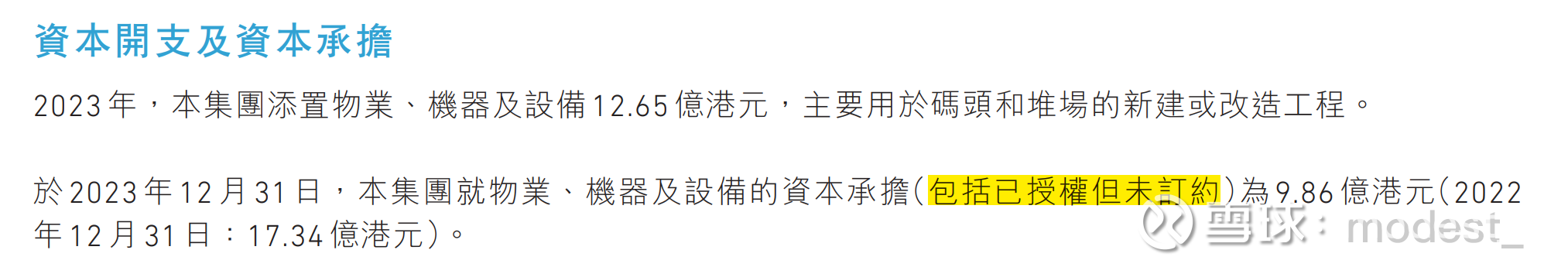 根据年报披露的23年资本承担为9.86亿港元(包含已授权但未订约的),2022年为17.34亿港元。这样推测24年的资本支出有望降低(具体是否降低还有待进一步咨询公司)