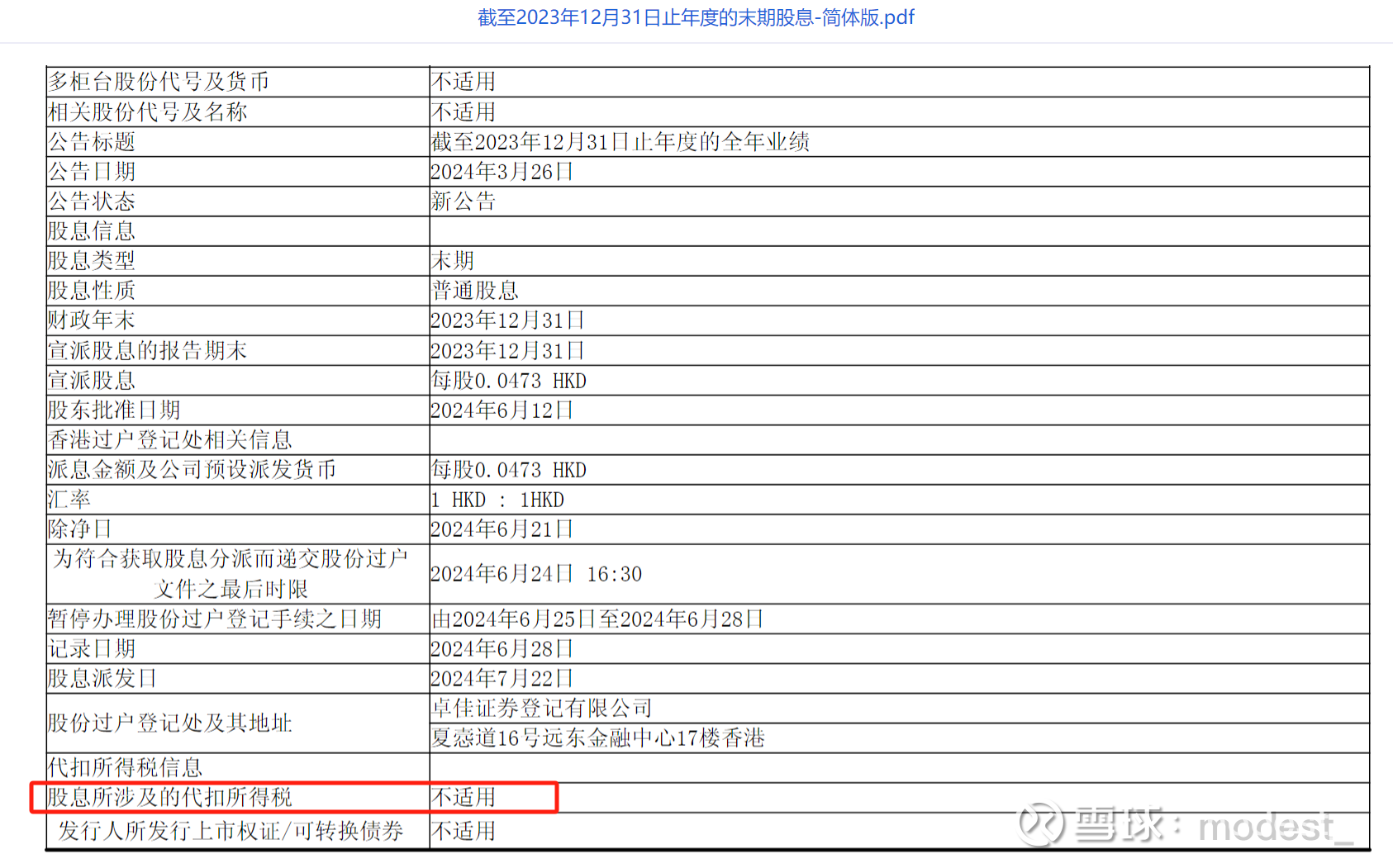 公司注册地在开曼群岛,并且已经计提所得税的红筹股。股息税为0。