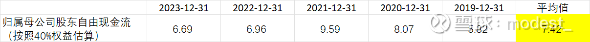 下表是估算的归属与母公司股东的自由现金流。考虑到公司应收应付变化不大(即营运资本变动不大,所以将其忽略),自由现金流按照经营活动现金流 减去 取得固定资产、无形资产和其他长期资产所支付的现金 来估算。算出来的自由现金流再按照归属母公司股东权益40%估算,那么公司过去五年归属母公司股东的自由现金流平均值为7.42亿元,对应当前市值38亿,市值/自由现金流=5.12倍,对应的自由现金流年回报是20%(由于公司派息比例只有40%,所以股息回报目前不到8%)