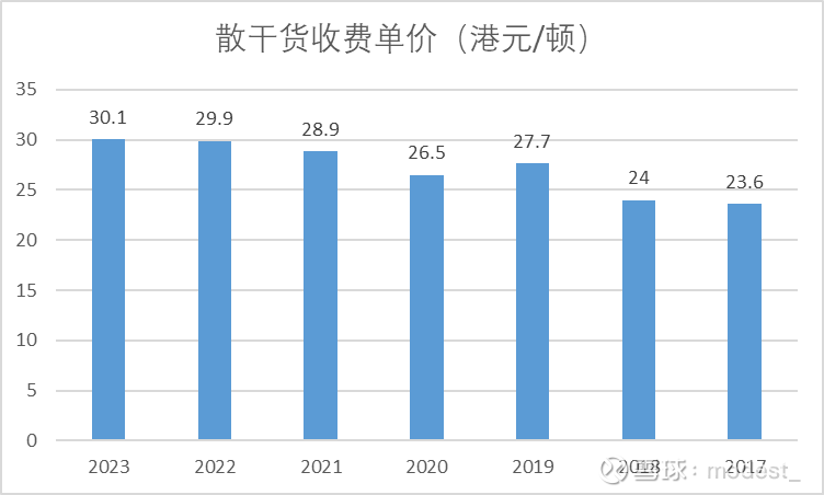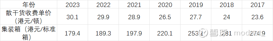 公司干散货的收费单价逐渐提高,从23.6港元/吨提高到了30.1港元/吨。
