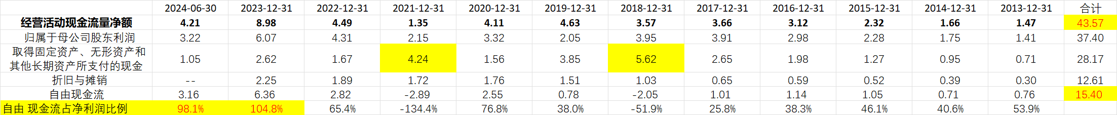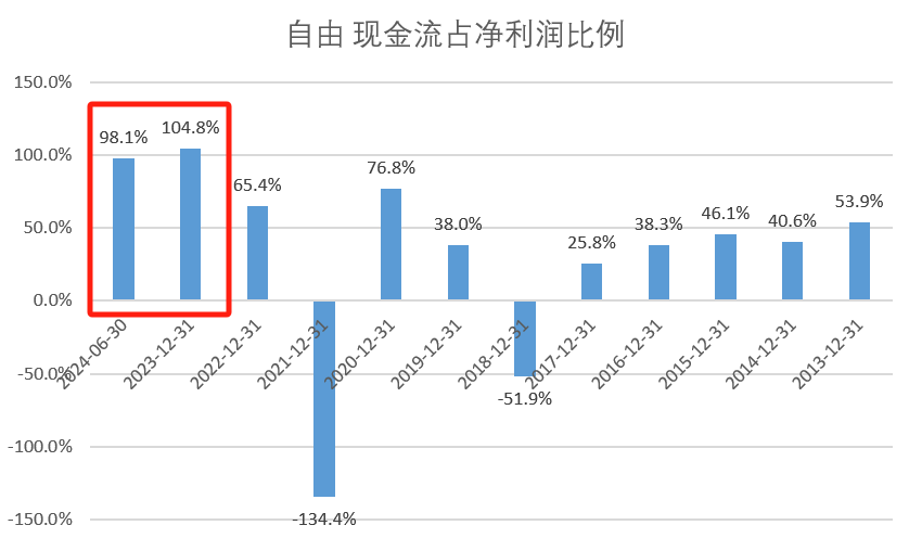 2022年以来,自由现金流占净利润的比例从65.4%提高了100%左右,所以公司开始逐步增大派息。从2021年的29.2%提高到2024年半年度的57.9%。