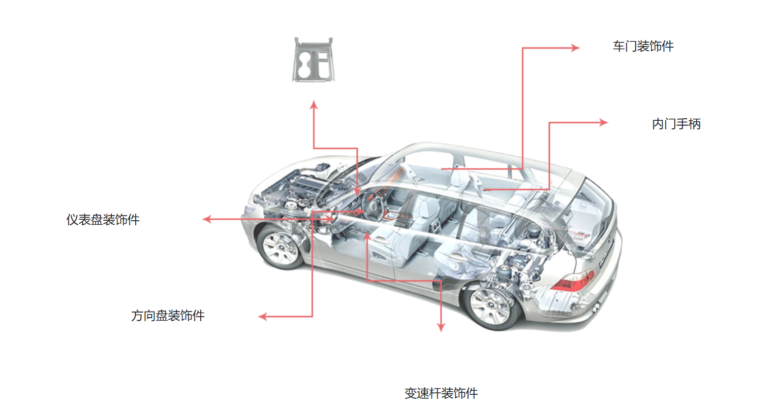 公司的主要从事汽车装饰相关产品,下图是公司生产的镀铬装饰件。