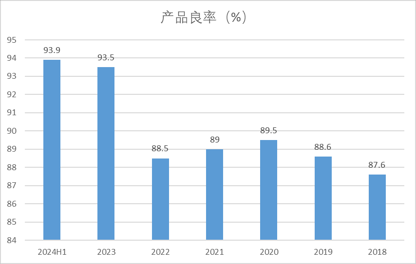 公司产品良率从2018年的87.6%增长到2024H1的93.9%,尤其是23年相比于22年显著的提高。良率提高得益於過去對更高效設備的投資,以及在可能的情況下持續實施的自動化,自動化流程減少人為錯誤。
