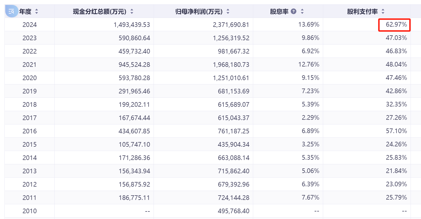 自2017年供给侧改革以来,公司的自由现金流迈上了一个新的台阶。2017-2024年8年间的自由现金流达到了年平均133亿元。这还是因为公司产能从山东迁移到云南,产能迁移完成后,这一部分的资本支出是没有的。
