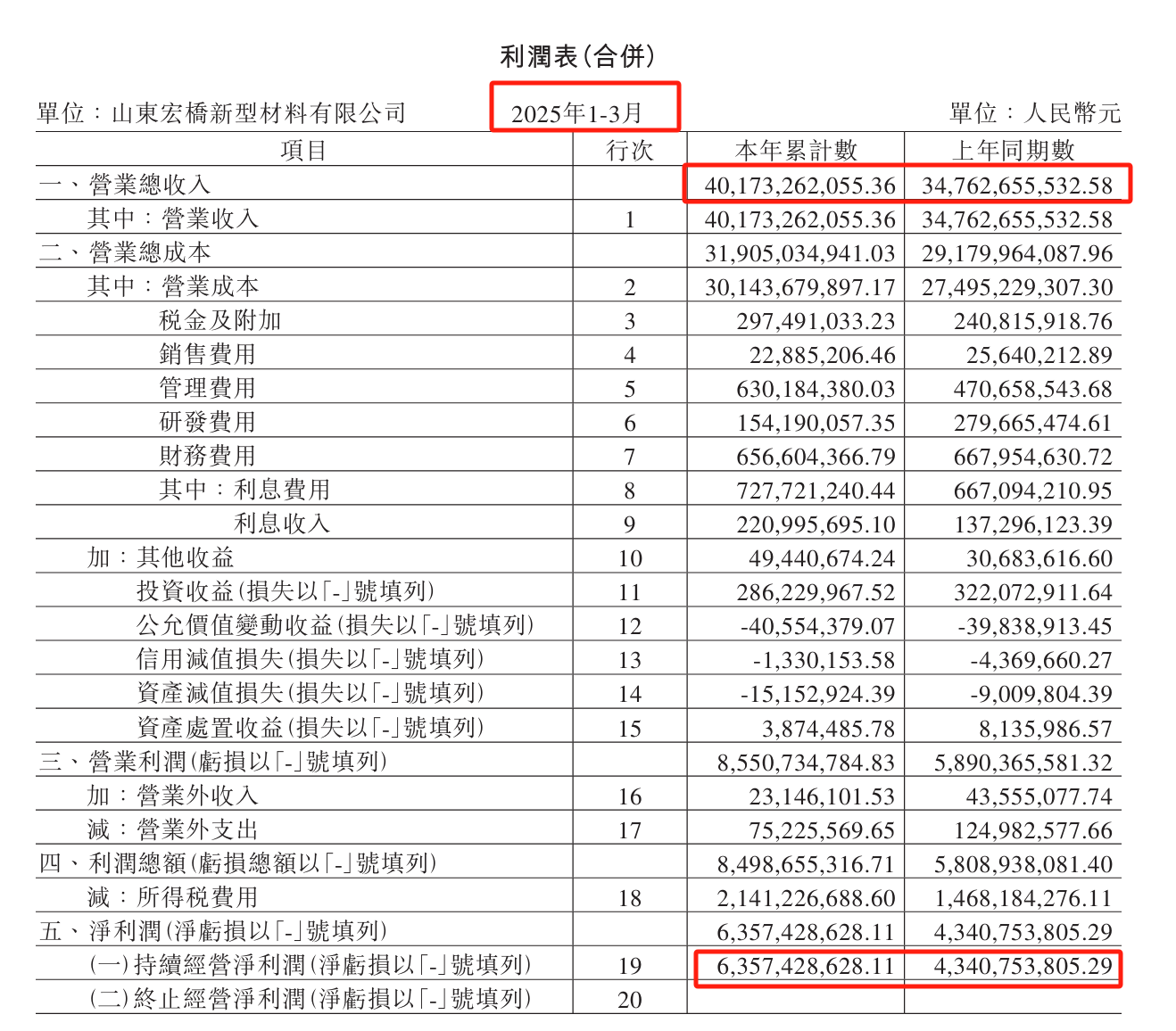 根据公司最新的公告,25年一季度子公司山东宏桥(山东宏桥是公司在境内的主要经营主体)收入、利润增长,净利润63.6亿元,同比24年一季度大幅增长20亿元。