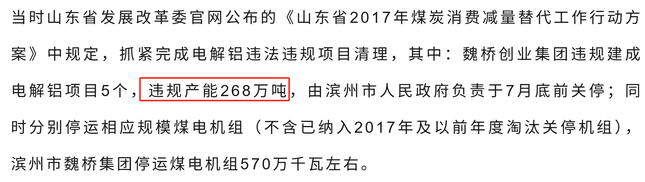 翻看当年的新闻稿,可以知道2017,2018年的时候,因为供给侧改革,中国宏桥也有200多万的产能因为违规,被关停了。