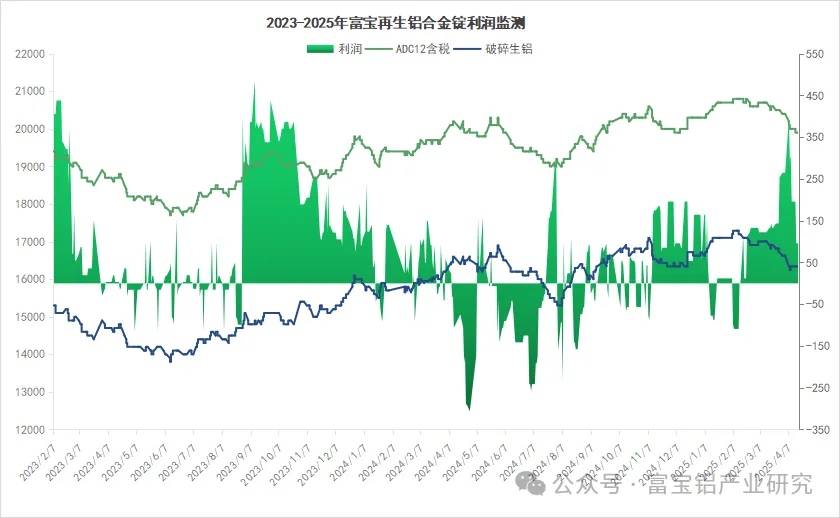 2025年一季度,再生铝合金锭(如ADC12)生产成本达20,135元/吨,而市场价格仅为19,900元/吨,行业平均利润为-235.6元/吨,陷入普遍亏损。主要原因是废铝原料价格波动(废铝占总成本89.2%)和产能过剩导致竞争加剧