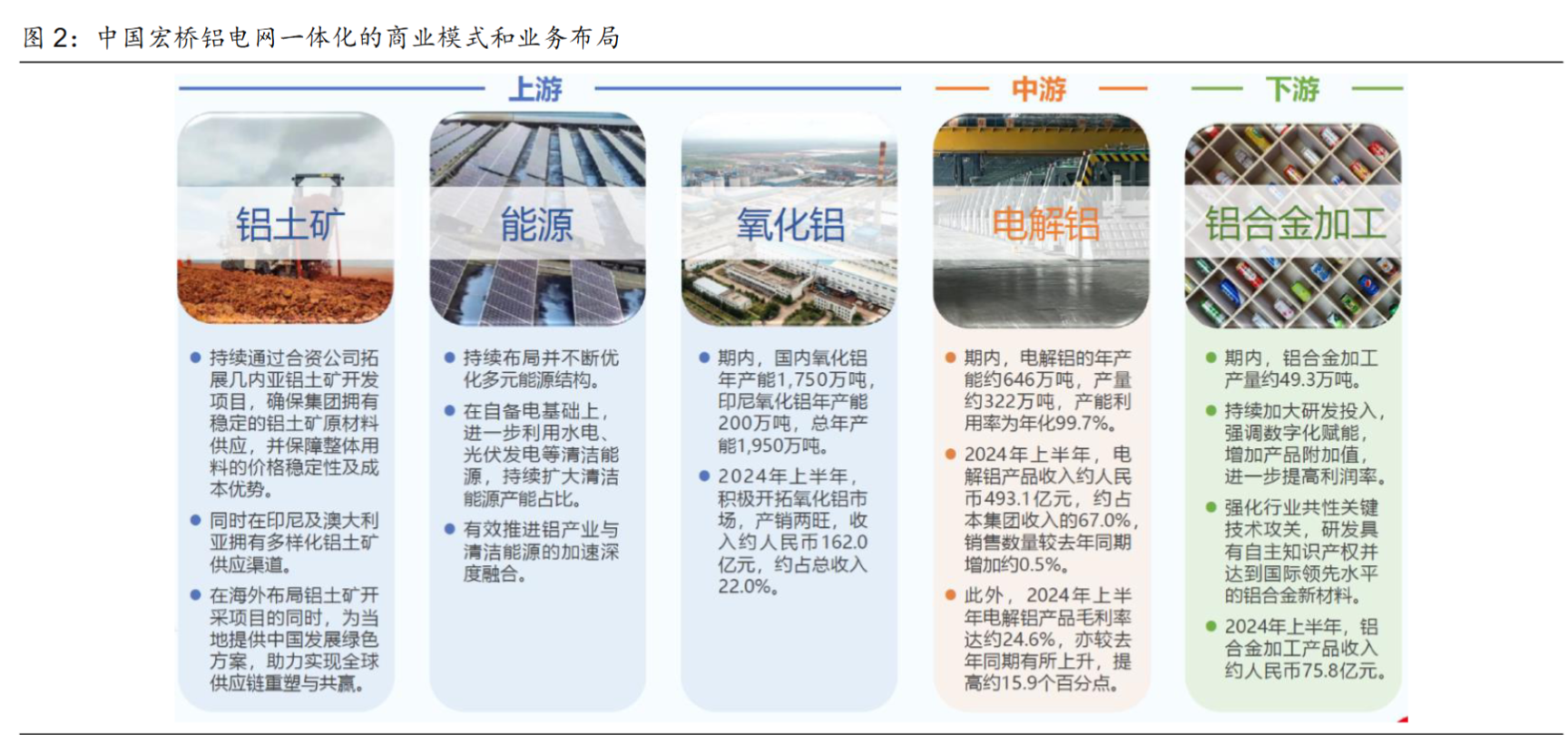 公司产业链一体化布局:集电力、采矿、氧化铝、液态铝合金、铝合金锭、铝合金铸轧产品、铝母线、高精铝板带箔、新材料于一体的全产业链特大型企业