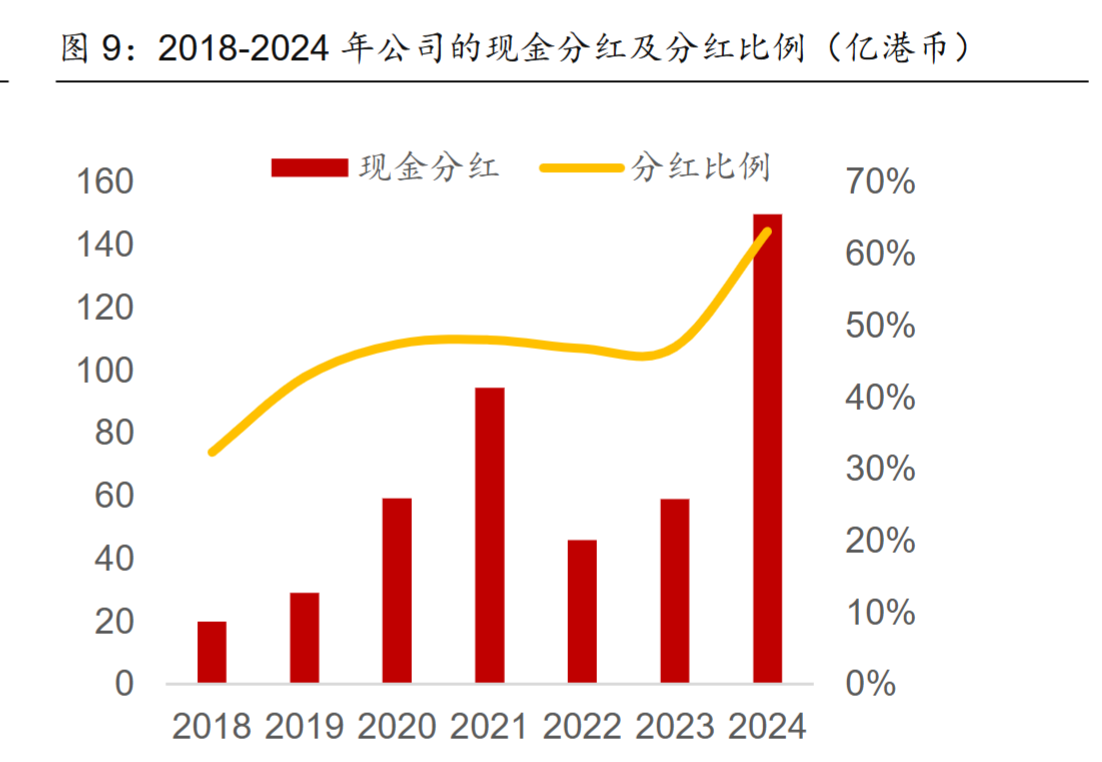 22年以来净现金情况有所好转,主要23,24年的经营现金流净额充沛。尤其24年净负债大幅减少了50亿,这应该也是公司敢于在24年大幅提高派息比率的原因。