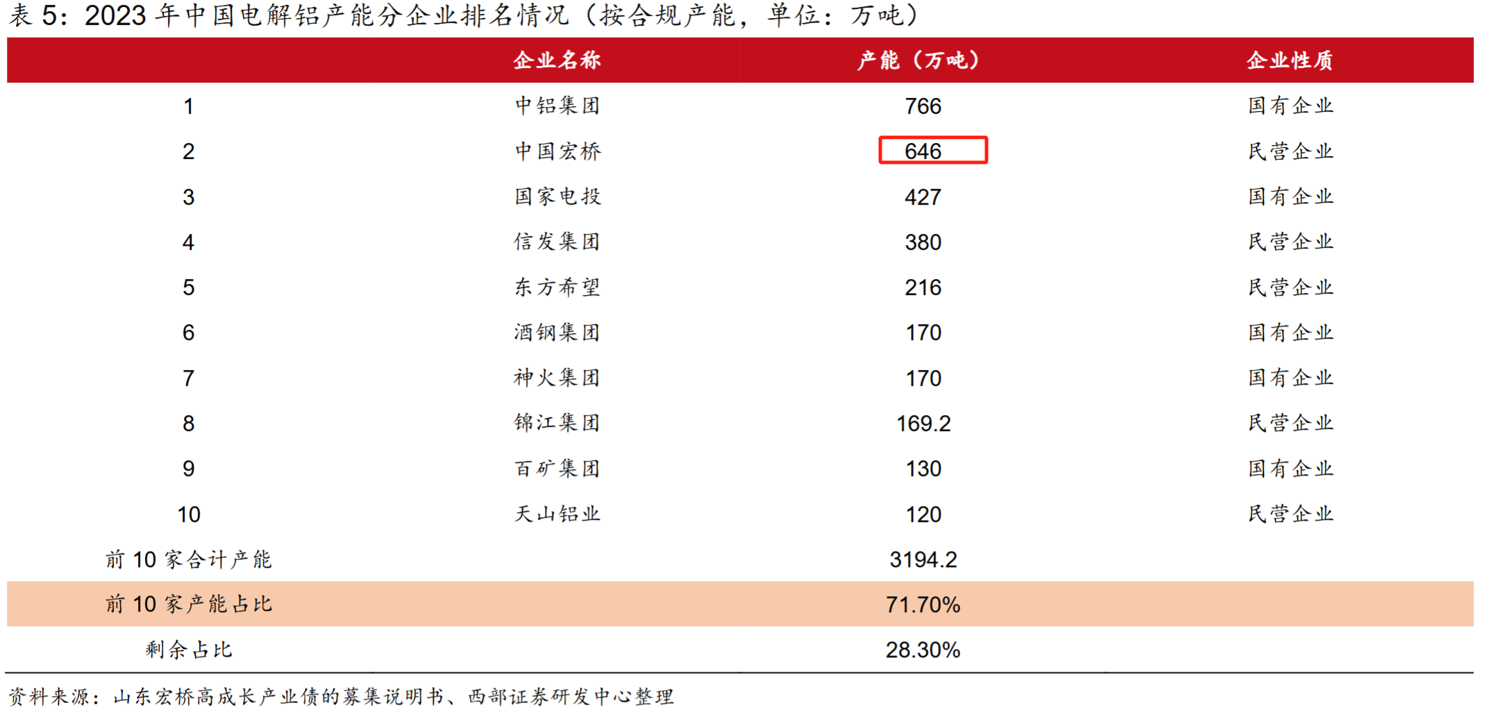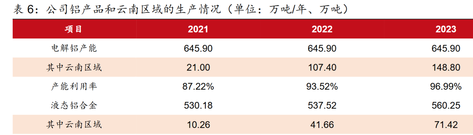 电解铝:电解铝的年产能约646万吨(根据公司24H1业绩会的披露,公司电解铝产能利用率为年化99.7%)。