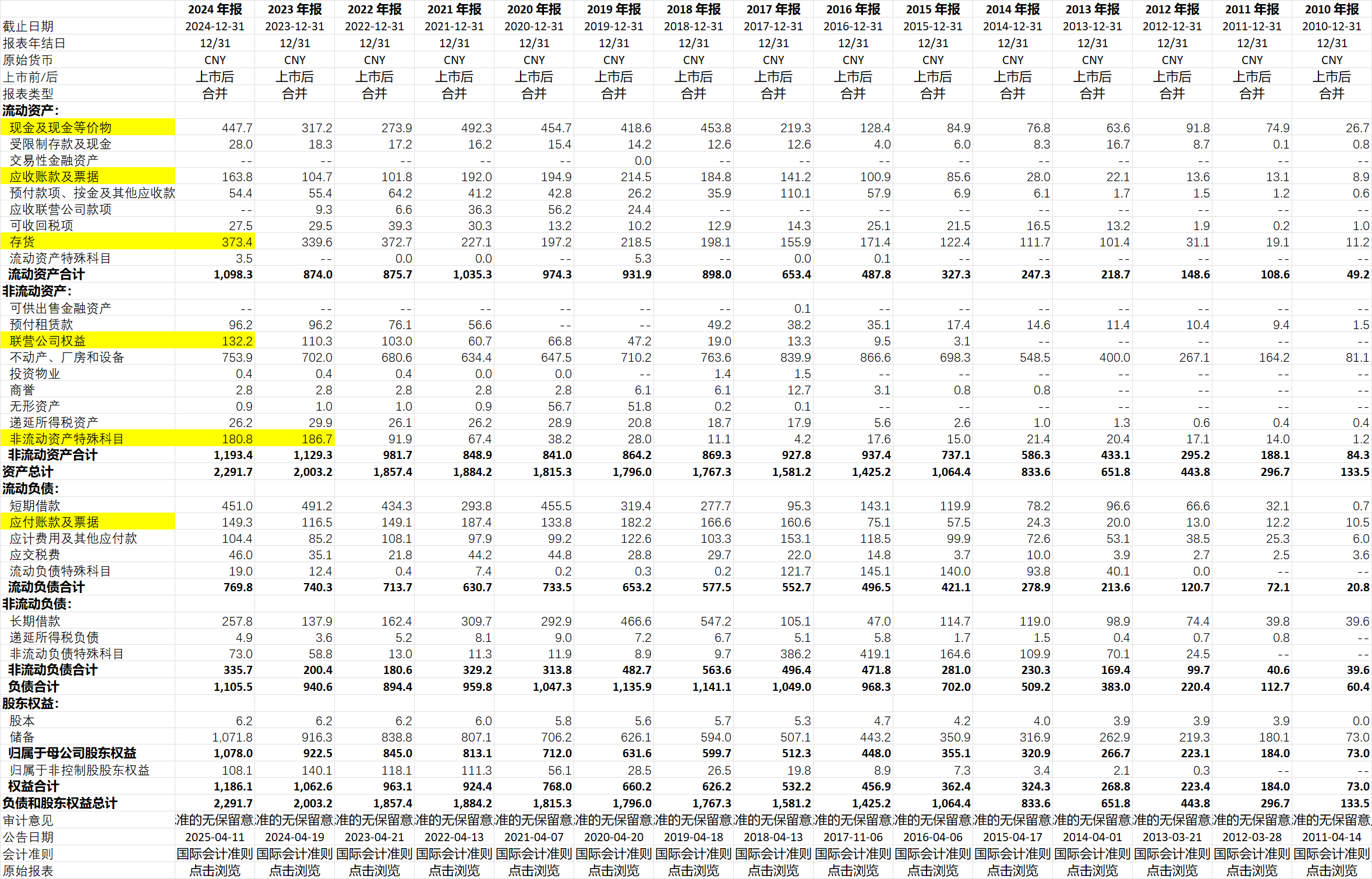 22年公司净现金大幅下降,主要因为22年公司的存货金额由21年的227亿增长到22年的373亿元,存货增加了146亿,大幅消耗了账面的货币资金。(从存货分类可以看到22年增加的主要是原材料,猜测因为预焙阳极涨价,煤炭涨价所致。但是23,24年的存货金额依然没有降下来,营收增长可以解释一部分,还有其他原因吗?那位长期跟踪的球友可以解释一下存货的变化不?)