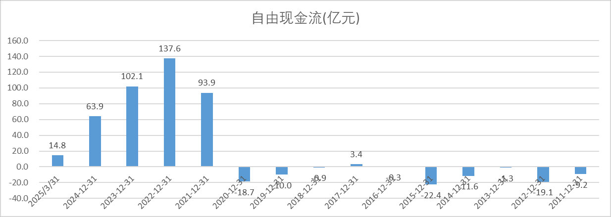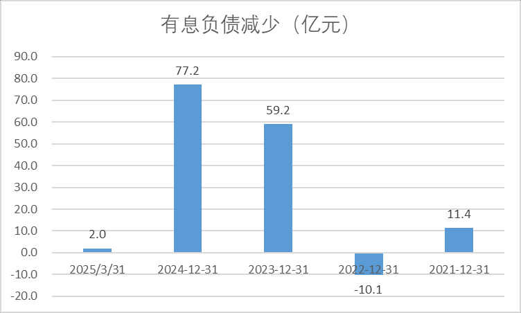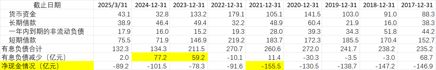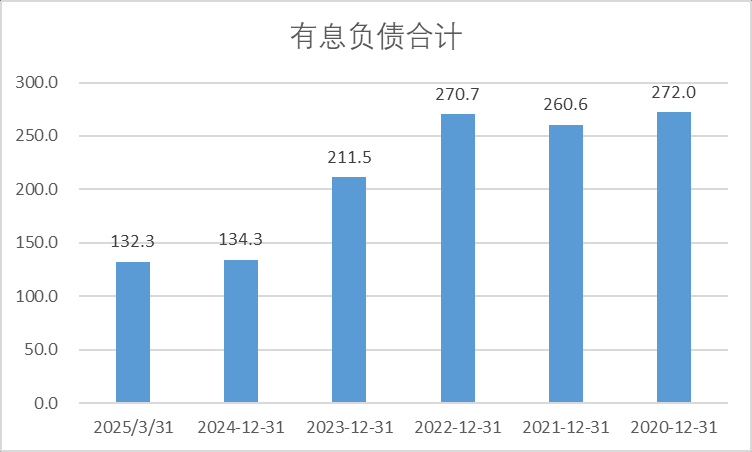 有息负债合计132亿元:用短期借款+长期借款+一年内到期的非流动负债来表示公司的有息负债。自20年-24年,大幅减少了140亿元。