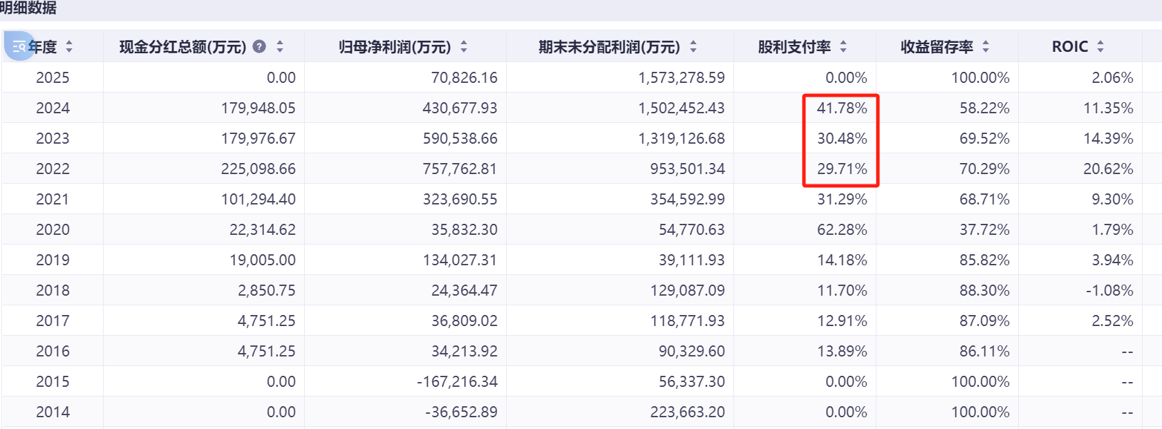 (4)如果看公司派息金额占自由现金流的比例,自21年以来逐步提高,24年达到28.2%。这个绝对值其实并不高,因为没有派息的自由现金流拿去还掉了负债,公司资产负债率不断降低,23,24年分别还掉了59.2亿,77.2亿有息负债。相信随着未来公司负债进一步降低后,派息金额占自由现金流的比例会进一步提高
