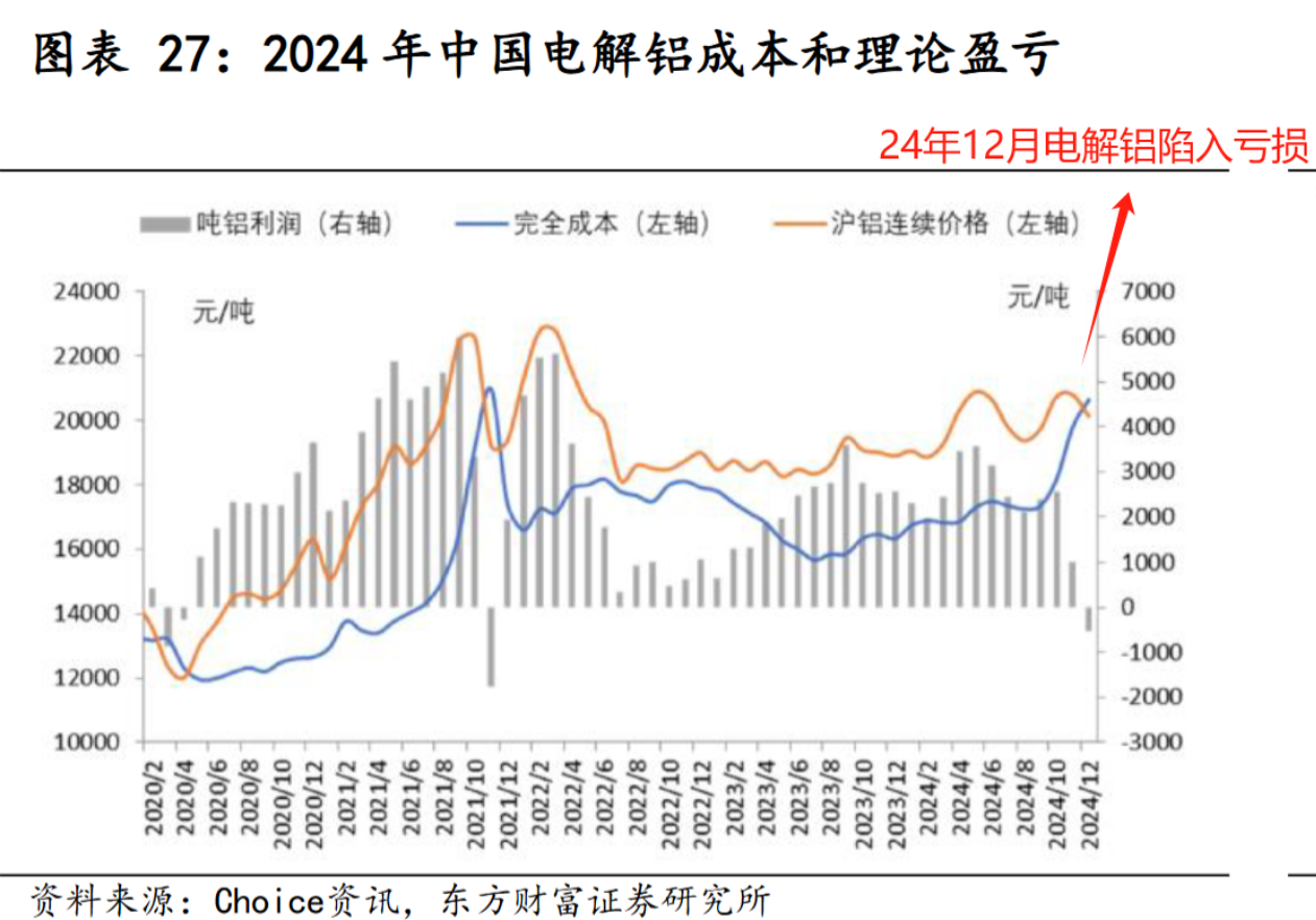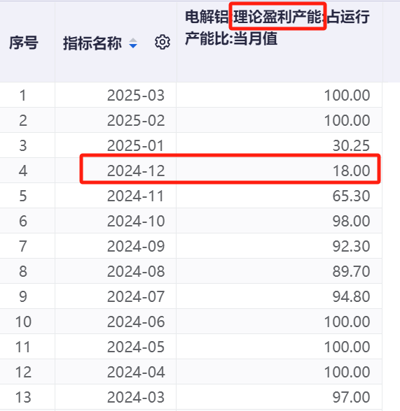 24年四季度电解铝行业普遍亏损,理论盈利盈利的产能只有行业成本最优秀的18%