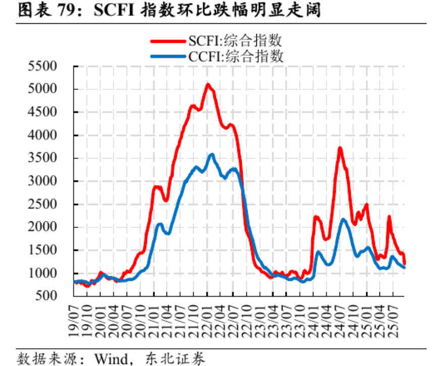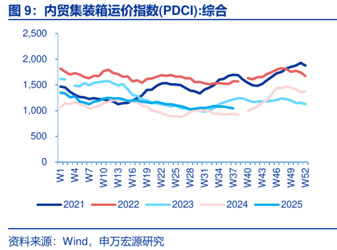 从内贸运价指数来看,截止到目前25年是强于24年的,但是24年下半年由于外贸运价指数大幅上涨,内运转外运,内运价格指数也发生了较大的涨幅。因此24年下半年的内贸业务也存在较高基数的问题。
