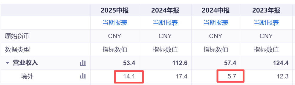25年公司中报收入下滑,但是净利润却大幅增长。主要就是因为海外的租赁业务从5.7亿大幅增长到14.1亿。从公司毛利率数据看,25年中报23.4%也相较于24年中报12.6%大幅增加。可以看到海外租赁业务对公司业绩贡献还是挺大的。