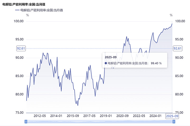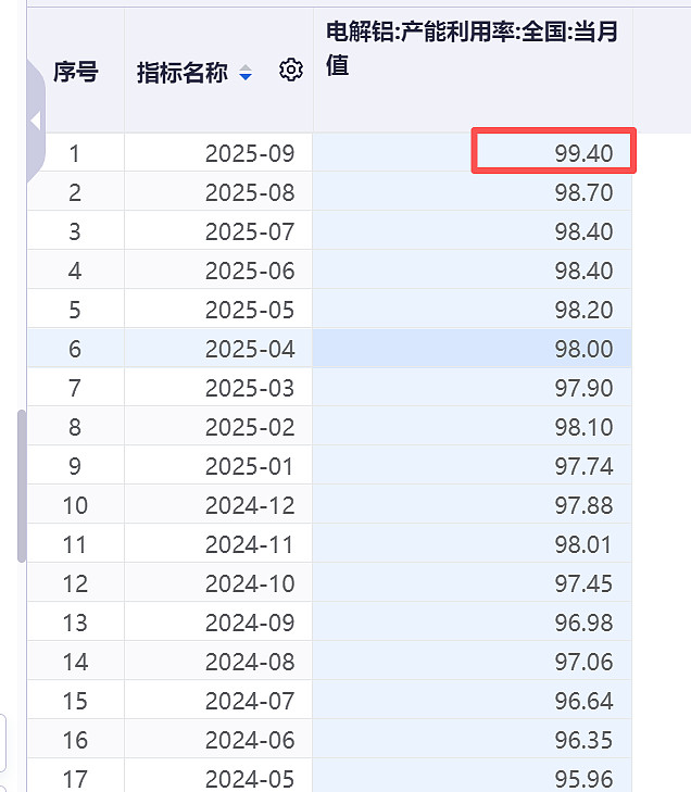 结合我昨天跟新的电解铝基本面信息(加仓电解铝的基本面信息),再补充一个数据,当前电解铝的开工率,最新9月创造了历史新高,达到99.4%。这基本上没有什么再提高的空间了。即便在这样的开工率,电解铝的库存还在低位。
