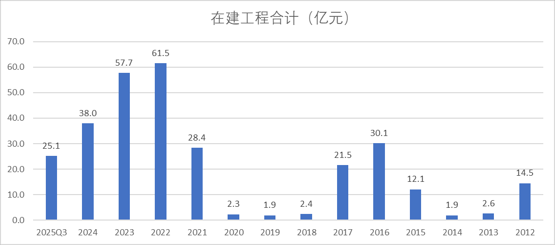 公司21年之后开始大额的资本支出,在建工程大幅增加,26年之后公司的大额资本支出有望减少,当前在建工程金额也已经连续三年出现下滑。