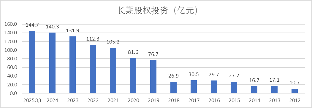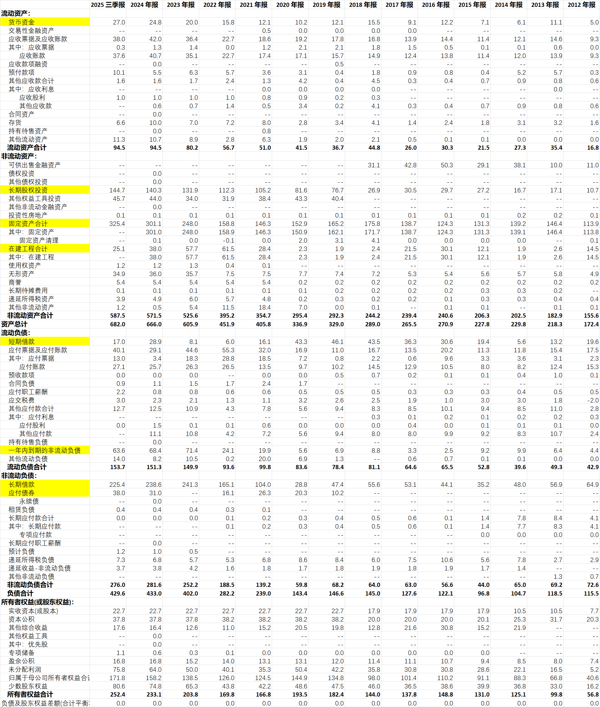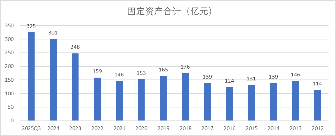 公司的固定资产自22年后逐步增大,从22年的159亿元增加到25Q3的325亿元。