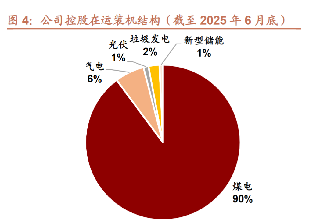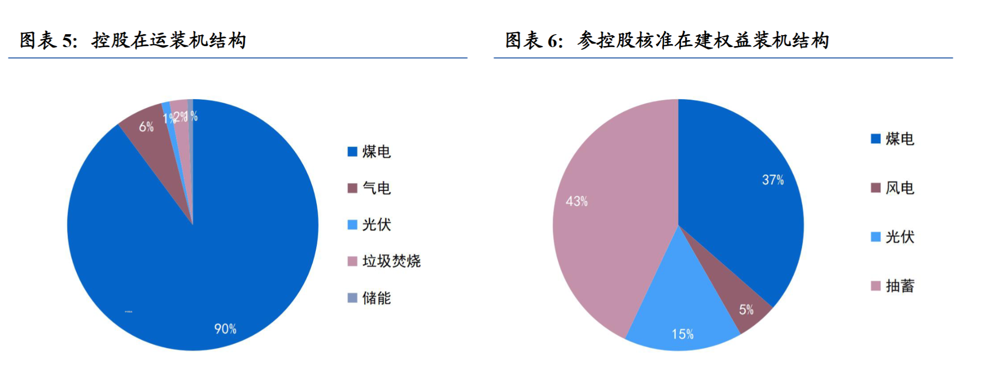 合计权益装机1633万千瓦,公司装机规模中约90%是火电。