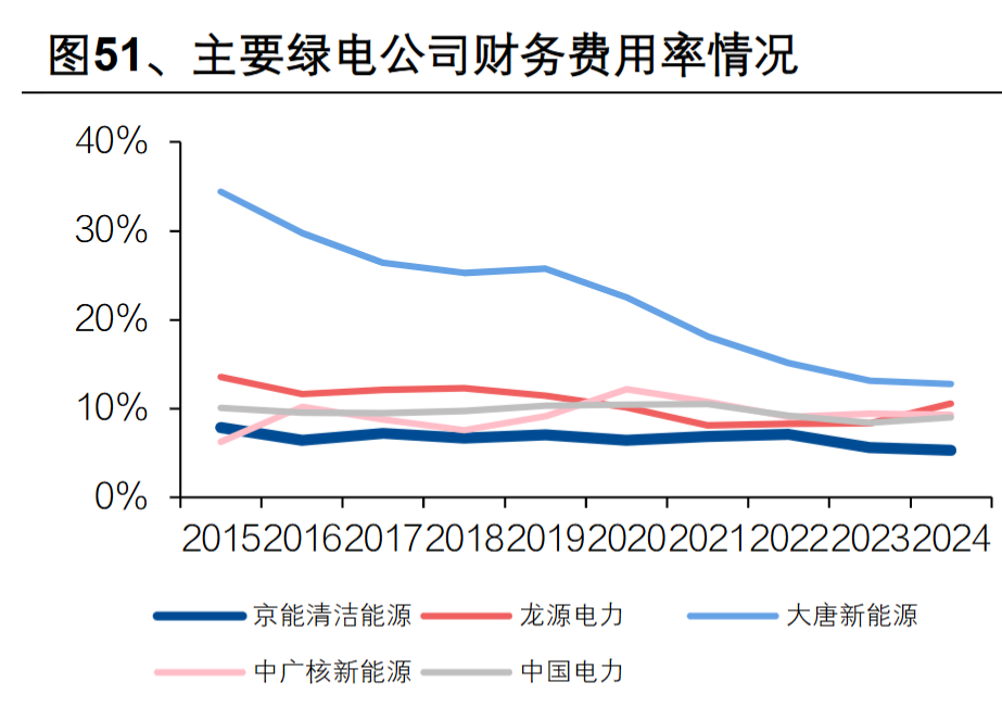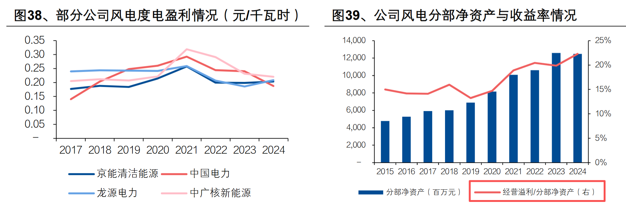 由于公司较为克制的资本开支和项目开发,且通过绿电进京等跨省区绿电交易提升消纳能力,公司风电与光伏项目利用小时数长期以来优于全国平均水平,2024 年实现风电/光伏利用 小时 2139/1300 小时,高于全国平均水平 12/89 小时