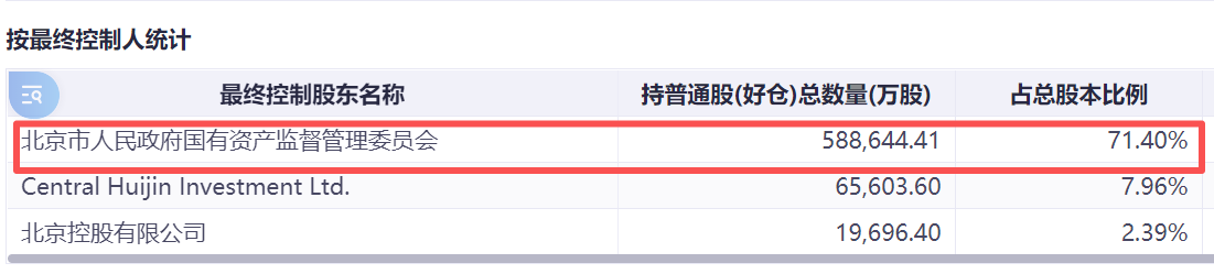 股权结构:公司的核心股东穿透上去是北京市国资委,合计持有公司股份超过70%。