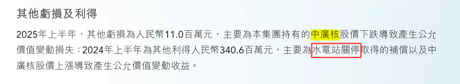 25年利润有所下滑,主要是中广核股票等金融资产公允价值变动产生损失,另外24年关停水电站得到补贴,导致24年其他利得的基数较高。