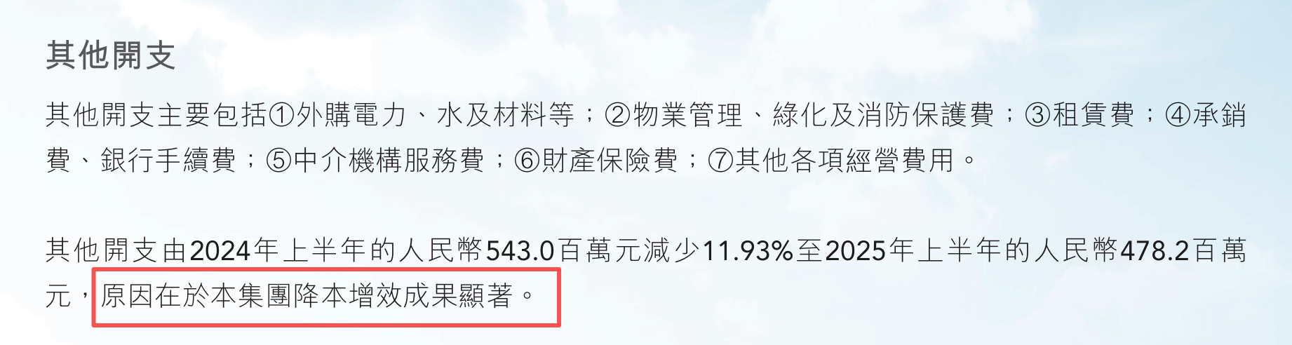 公司还在25H1半年报中提到了公司降本增效的成果显著,其他开支同比下降了11.9%。去翻历史数据,公司的其他费用实际上在24年就有所降低。