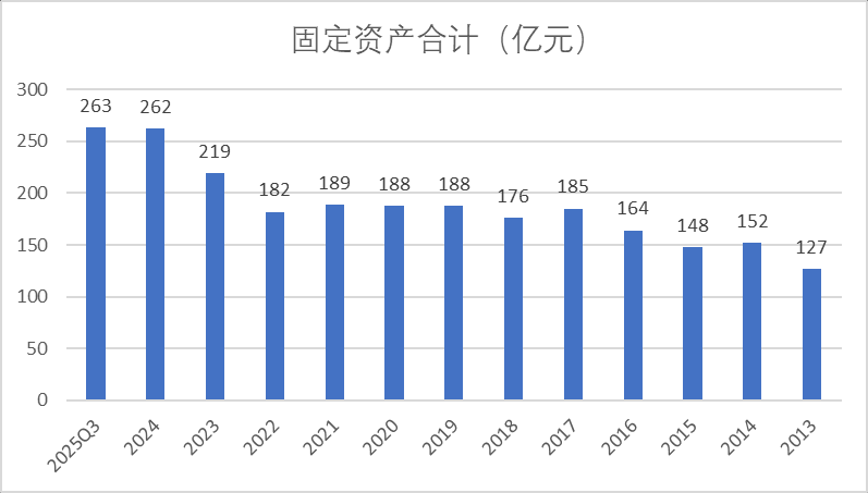 固定资产263亿元:固定资产是公司最主要的资产,超过了50%。