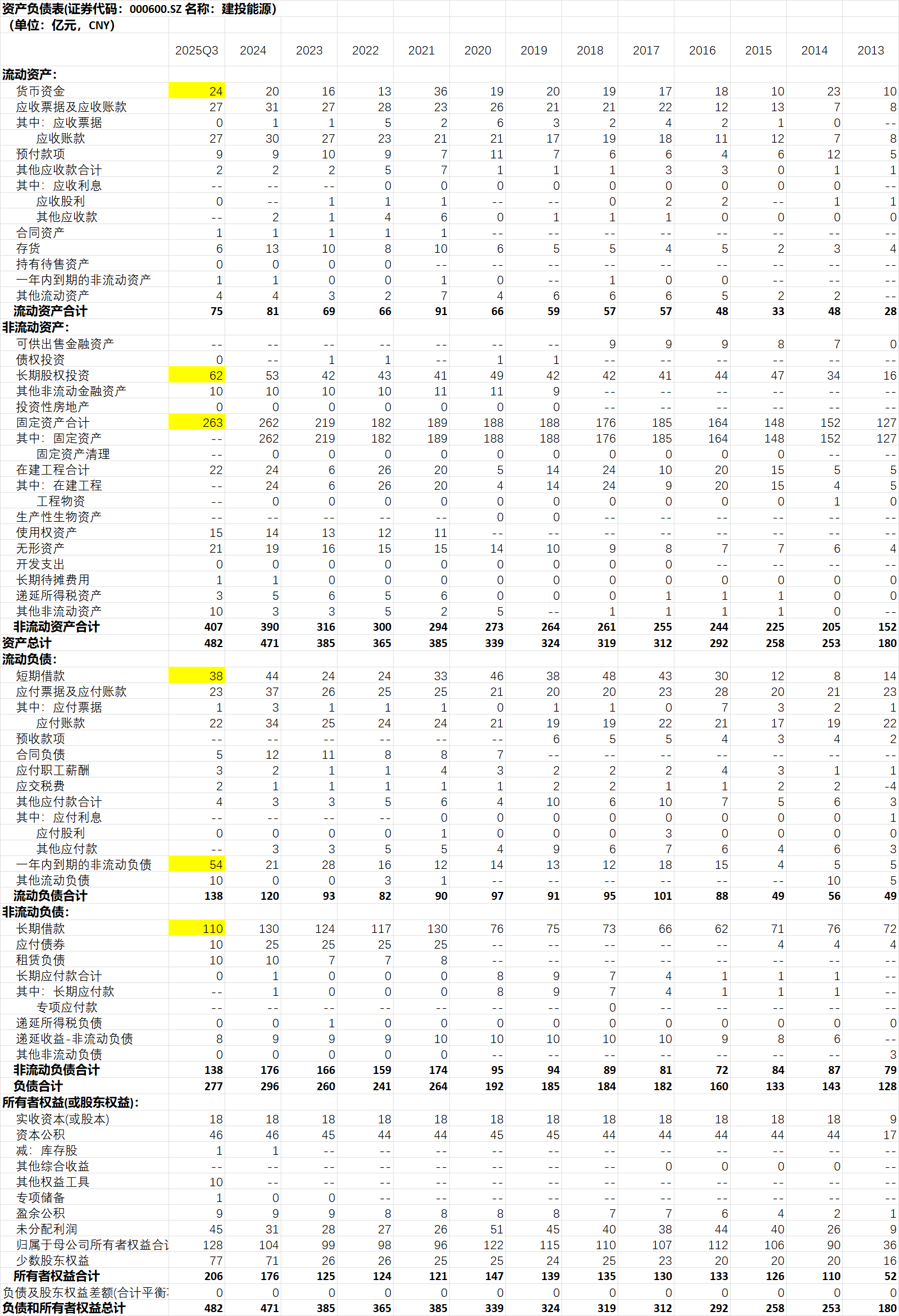 截止25Q3,公司第一大股东河北建设投资集团有限责任公司持有公司65%的股份。实际控制人河北省国资委。(建投集团分别以建投能源和新天绿色能源开展火电和新能源发电业务)
