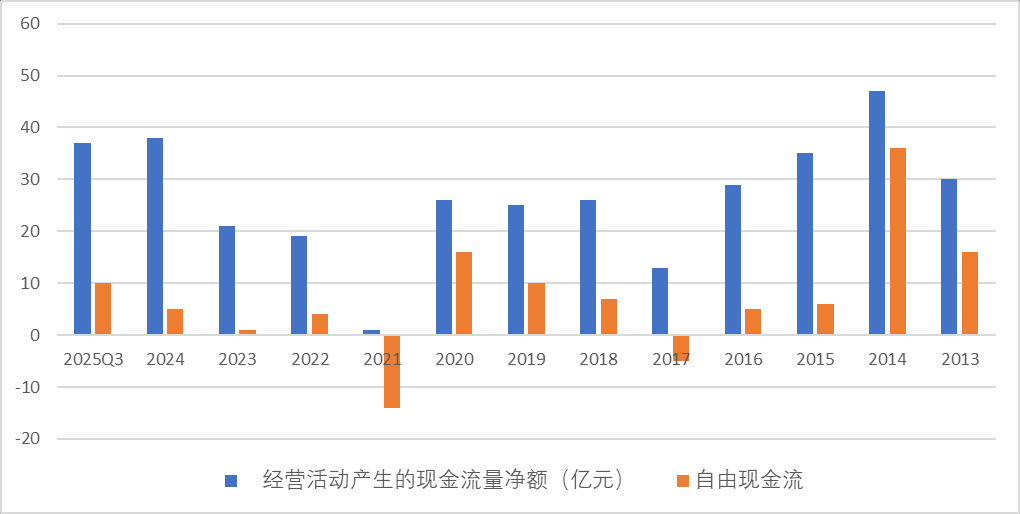 自由现金流情况:由于公司持续资本开支,自由现金流大幅小于经营活动现金净额。