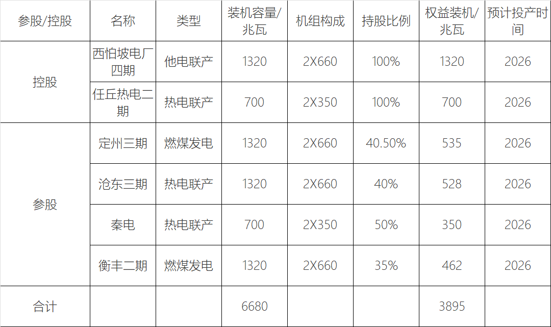 (2)参股:如沧东电厂三期2X660MW项目、定州电厂三期2X660MW项目、秦电2X350M