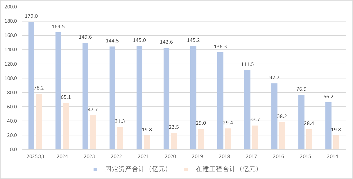 固定资产:截至25Q3末,公司固定资产179亿元。此外,公司还有在建工程78亿元。