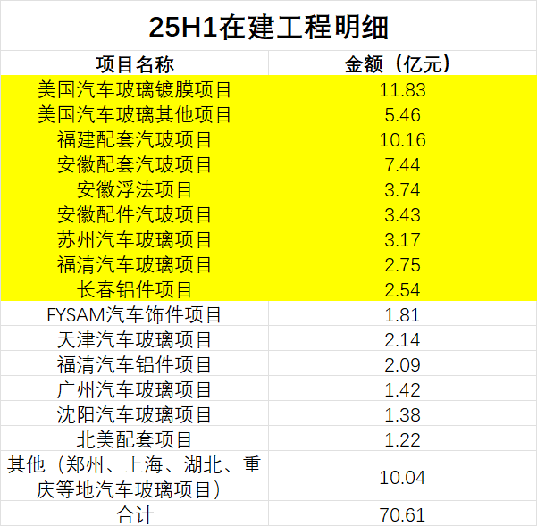 这些在建工程,主要是美国以及国内各地的汽车玻璃项目。
